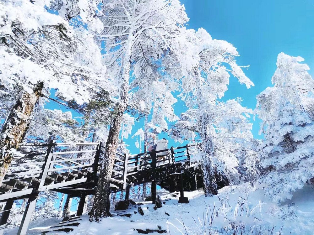 Nếu thời tiết thích hợp, du khách có thể thấy tuyết đọng trên các tán cây từ