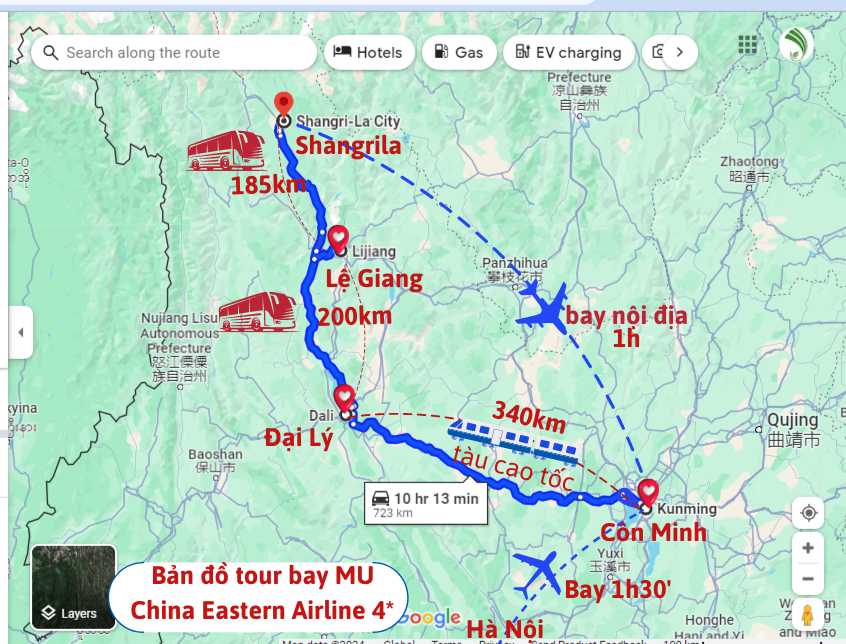 - Vé máy bay 2 chặng Hà Nội – Côn Minh – Hà Nội